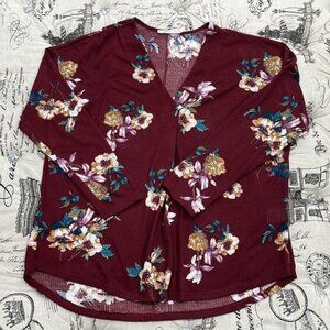 Lush Floral Long Sleeve V-Neck Top