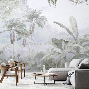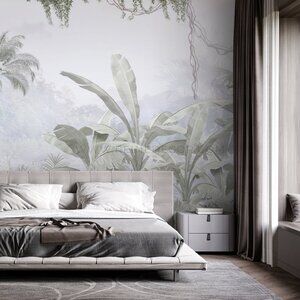 Lush Greenery of a Silver Rainforest in White Wallpaper | Tropical Botanical Wal