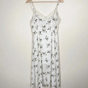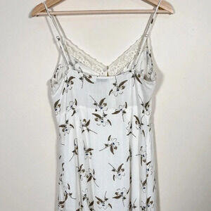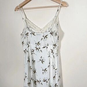 WHAT: Super cute strappy midi dress with floral print and lace details at neck and hem. Button closure at front. This dress will bring flattering and feminine look