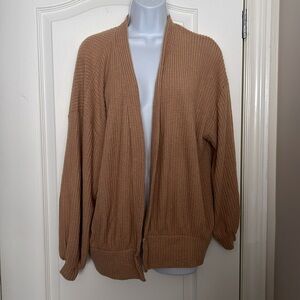 Lush Womens Waffle Brushed Open Front Balloon Sleeve Sweater Cardigan Size Small