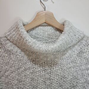 Lovely oversized fit heathered light gray knit cowl neck sweater by Lush. Gorgeous soft cool touch feel. Great used condition no stains or tears. The perfect cosy slouchy Fall sweater. Labelled size S/M but could also fit a large as it's an oversized style fit and has natural stretch. The hem is a couple inches higher in the front than the back, and has side splits.