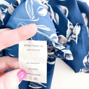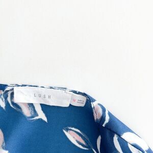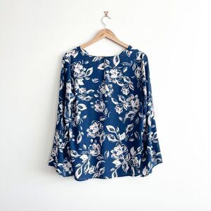 Lush Womens Blouse Long Sleeve V Neckline Floral Blue Medium