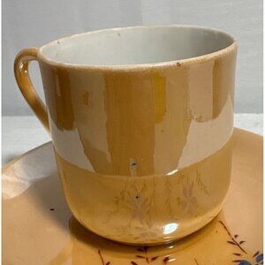 Lusterware Tea Cup & Saucer Japan Hand Painted Parrot Bird Blue Floral Orange