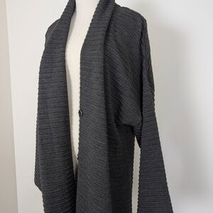 Luukaa Anthracite Wool Duster Long Cardigan Wide Sleeve Maxi Button Closure