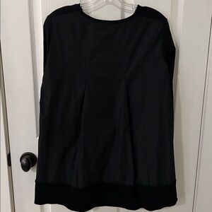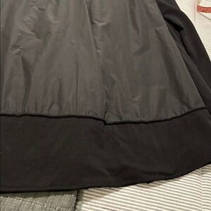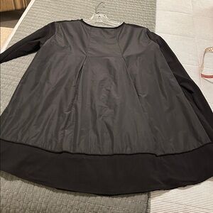 Super cute tunic with a parachute fabric treatment on the back and wrapping around a bit to the sides. The rest is a cotton jersey. Flattering silhouette.
