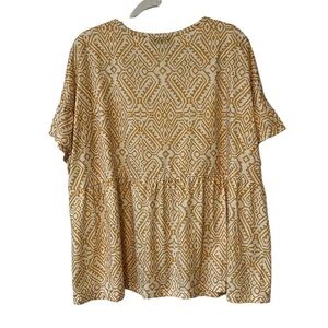 Luukse Button-Front V-Neck Peplum Top Yellow & White Abstract- Size 3X
