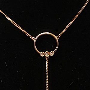 Necklace is a beautiful Brass plated rose gold toned chain with open hoop charm and hex-studded crystals