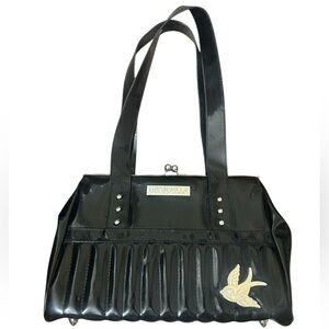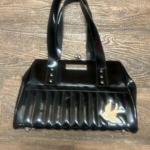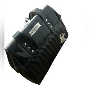 Lux De Ville medium-large shiny med bag stiff vinyl purse with silver sparrow