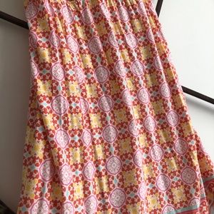 Elastic under bust that is comfy and stretchy. I could stretch the bust at least 20 inches pit to pit so it should fit sizes Medium to Large. It forms to your shape because of the soft and stretchy material.
