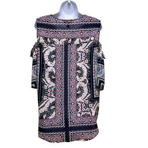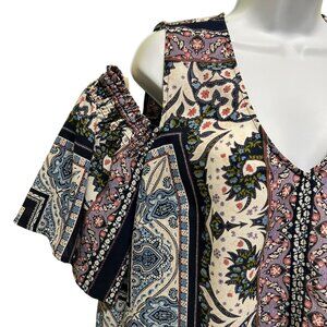 Luxology Cold Shoulder Bohemian Pattern High Low Blouse Size L Hippy Girl