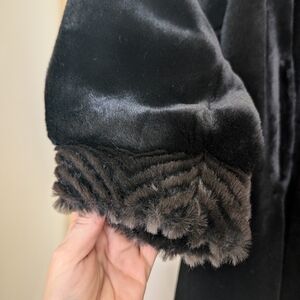 Elevate your style with this luxurious black coat featuring elegant faux fur trim. Perfect for any occasion, this coat combines warmth and sophistication.