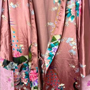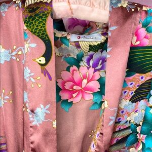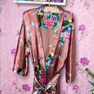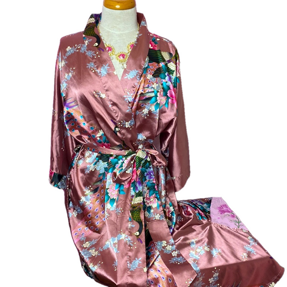 Experience the ultimate comfort with this luxurious floral satin robe. The stunning pink color is enhanced with vibrant floral designs, making it a perfect addition to your loungewear collection.