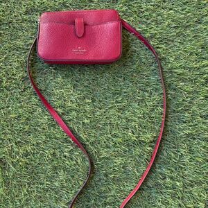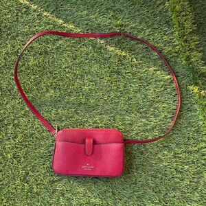 Luxury deep bright red Kate Spade bag, with strap and three compartments