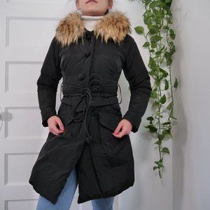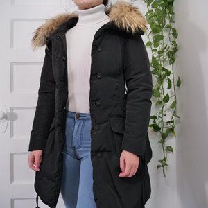 gorgeous and luxury look faux fur collar details, black classic and little shiny material. this definitely keeps you warm & stylish in the winter!