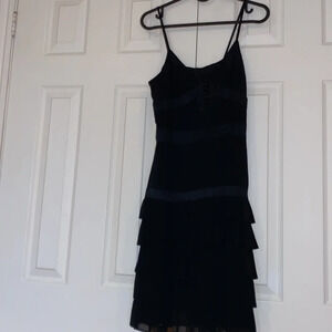 🖤cute little black dress Luxury thin straps layered chiffon fully lined black dress Sz 4 approx measurements photographed same day shipping from smoke free home