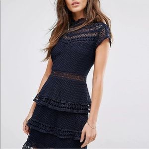 Luxxel Black Embroidered Lace Peek a Boo Tiered Dress