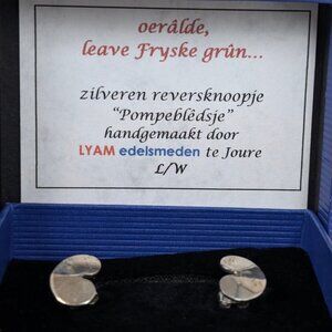 These earrings by Lyam are made of sterling silver and have post backings. The translation of the paper inside the box that these pieces come in says they are silver lapel buttons, and I'm sure they could be used for this purpose, but all I see is earrings. There are no backings in the pictures, but I will include new 925 backings when shipped out. The earrings have tarnish and wear throughout but could be brought back to life with a nice polish. The box shown in the pictures is included.