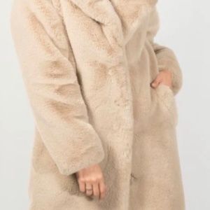 Canadian label Lyla + Luxe faux fur coat in taupe colour.this coat is very fluffy and warm. Measures approximately 22” from pit to pit and is 37” in length. Size large, but fits bigger. Hard to capture just how fluffy and cute this coat is!