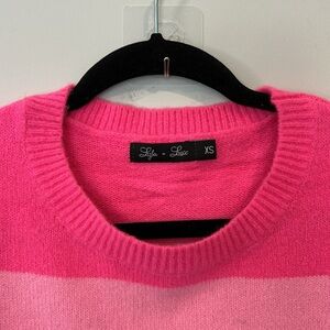 The Sali Striped Sweater is a perfect mix between comfort and style. With its fun, monochromatic stripe, you'll be sure to feel cute and impress the crowd !
