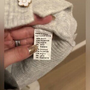 Color/Details: Argyle knit, white & gold floral buttons, puff shoulders