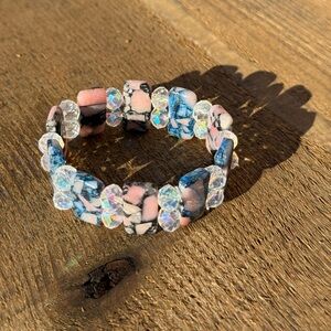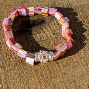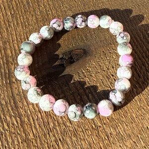 This elegant bracelet features a stunning combination of peach blossom agate beads, perfect for adding a touch of sophistication to any outfit. The intricate design and beautiful colors make it a must-have accessory.