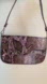 M by Mosquitos small shoulder bag is a grey, brown, purple and cream snakeskin print in faux leather with silver tone hardware. M by Mosquitos is a brand from Spain. It has a detachable strap so you can also use this bag as a clutch. The top folds over envelope style, has a zipper top with branded zipper pull, and also a closure is a magnet onto the "M by Mosquitos" silver tone metal logo concealed under the flap. A pocket on the back does up with a snap. The interior is black fabric and has a zipper pocket.