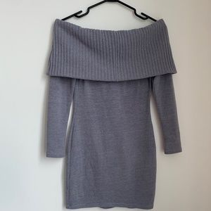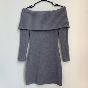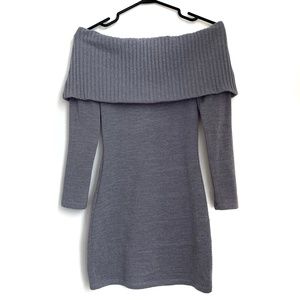 M Boutique/Mendocino Gray Off Shoulder Sweater Bodycon Mini Dress XS/S (EUC)