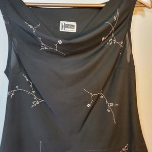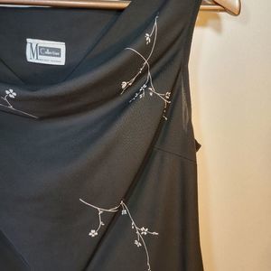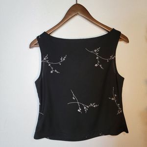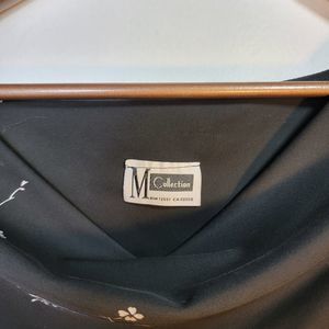 Retro 90s style M Collection crop top. See-through black material with white floral print. Cowl-neck.
