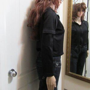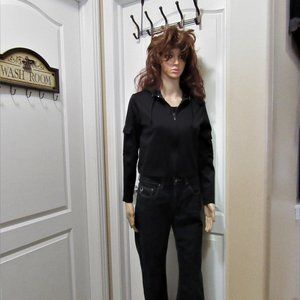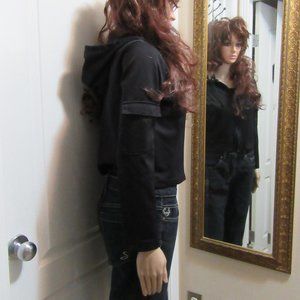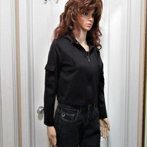 The top has a hood and zip up and 2 pockets one on each sleeve velcro closure