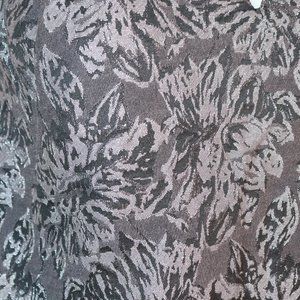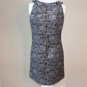 A mix of grey tones with a touch of shiny silver thread. It has 2 pockets on the hips. Above the knee dress.
