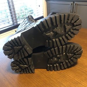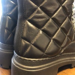 M.Gemi The Etta feature a quilted leather lace-up combat-style black boot with pull on tabs for easy entrance and exit. Perfect for an all over edgy aesthetic.