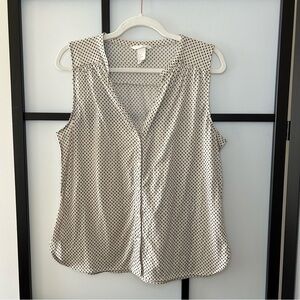 [M] H&M Button Down Creme w/ Mini Black Ferns Printed Sleeveless Tank Top Blouse