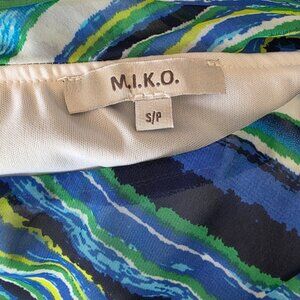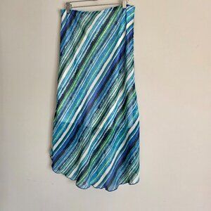 M I K O Flowy High Low Chiffon Summer Skirt Blue Stripe Small