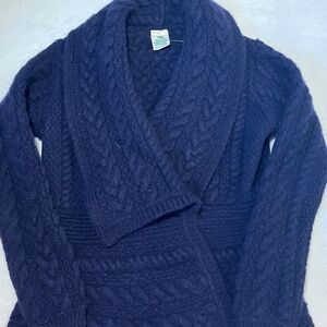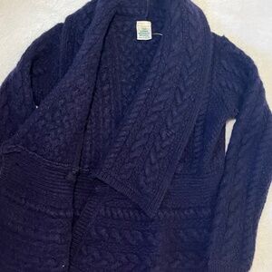 M Irish Merino Wool Cable Knit Jacket Navy Blue