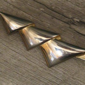 Signed M. Jent geometric Xmas tree shape brooch, composition alloy, silver tone,