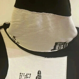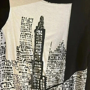 [M] Lavena Cowl Neck Sky Scraper Print Embellished Tunic Sweater Blouse Dress