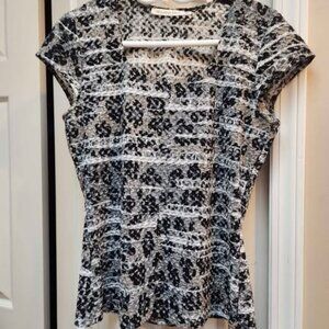 Beautiful woven Melanie Lyne black-and-white textured top with cap sleeves, size medium.