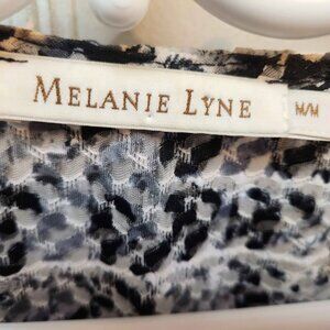 [M] MELANIE LYNE blouse black tan & white dressy textured cap sleeve medium