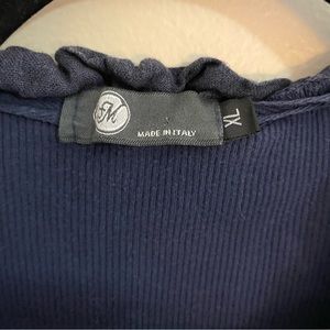 M Made In Italy 100% Linen Sleeveless Ruffled Collar, Ribbed Back, Ribbed Hem fir a Sporty look, 2 Pockets in Front MIDI Dress, has stretch in great condition