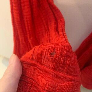 a small hole in the hem, not noticeable since the material is a crochet knit