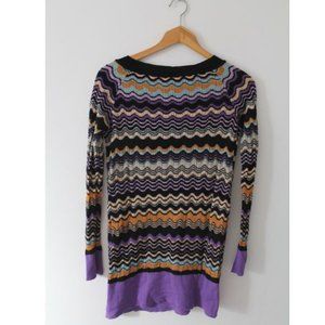 M Missoni Merino Wool Blend Zip Zag Long Sleeve Tunic Knit Top Size EU 44