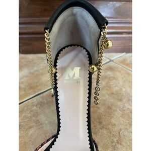 Authentic, stunning and unique Missoni heels with semi-pointed toes and chain-link accents chain. Wrap-aound straps and hook & eye closure at sides. Leather Trim.