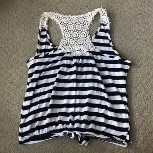 •Edge Brand •Size Medium •Black And White Stripes •Off White Detail At Top •Tie Detail At Bottom •Good Condition