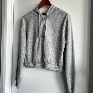 Cozy and super soft, cropped style sweatshirt with hood and zipper for easy open and close.