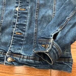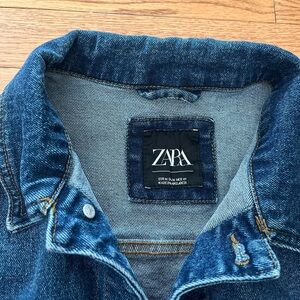 Chic indigo denim jacket from Zara. Features a classic collar and button closure.