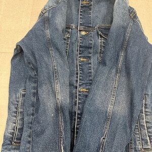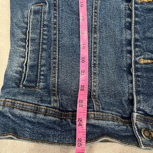 Chic indigo denim jacket from Zara. Features a classic collar and button closure.