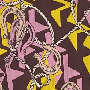 Horseshoe print, rope motif, equestrian chic, Italian designer, sleeveless midi, retro geometric, M Missoni, Missoni dress, sleeveless knit dress, zigzag pattern, geometric print, Italian fashion, designer day dress, elastic waist, A-line dress, summer knit, lightweight dress, boho chic, vintage inspired, retro mod, maroon pink yellow dress, M Missoni, zigzag knit dress, Italian designer, sleeveless midi, printed dress, retro geometric, made in Romania, maroon pink yellow