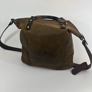Classic M0851 crossbody bag made from thick, high-quality leather in a rugged distressed brown. Spacious and stylish with an adjustable strap and top handle.