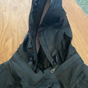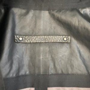 Stunning black jacket from M0851, Literally worn once and in absolutely perfect condition, as new. Very stylish and a classic - perfect for rain as it is water-repellant and also for spring and fall. Straight and structured look, with detachable hood. Multiple pockets outside (4) and inside (2) with snaps. Beautiful details Loose fitting so could fit XL as well. An amazing price as it was $400 with tax.