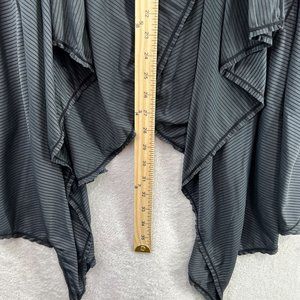 Description: Grey striped tight knit nylon asymmetrical cardigan. Perfect for activewear and athleisure